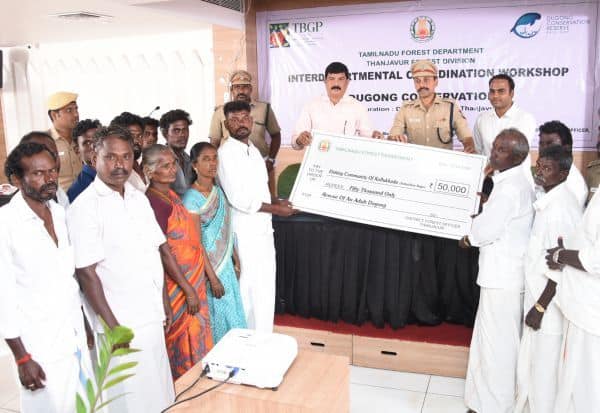 அதிராம்பட்டினம் அருகே கீழத்தோட்டம் மற்றும் கொள்ளுக்காடு மீனவர் கிராமத்தைச் சேர்ந்த இரண்டு மீனவர் குழுவினர், சில மாதங்களுக்கு முன், மீன்பிடி வலையில் சிக்கிய கடற்பசுக்களை மீட்டு, அவற்றை பத்திரமாக மீண்டும் கடலில் விட்டனர். அவர்களை ஊக்கப்படுத்தும் விதமாக, தலா, 50,000 ரூபாய் என மொத்தம், 1 லட்சம் ரூபாய் ரொக்கப்பரிசு இக்கருத்தரங்கில் வழங்கப்பட்டது.