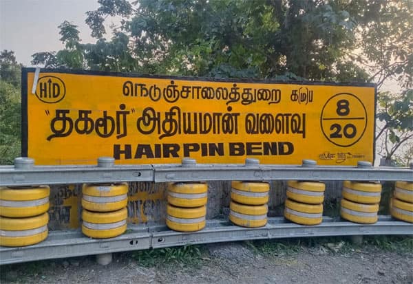 சேலம்: ஏற்காடு மலைப்பாதை 8வது கொண்டை ஊசி வளைவிற்கு தகடூர் அதியமான் வளைவு என்று நெடுஞ்சாலை துறை பெயரை எழுதி உள்ளது. மேலும் அங்கு போலீசார் பாதுகாப்பு பணியில் ஈடுபட்டுள்ளனர்.