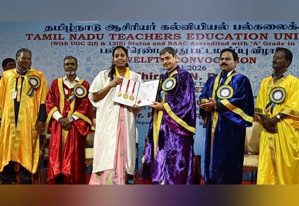தமிழ்நாடு ஆசிரியர் கல்வியியல் பல்கலை, 12ம் ஆண்டு பட்டமளிப்பு விழா, சென்னை சைதாப்பேட்டையில் உள்ள தமிழ்நாடு திறந்த நிலை பல்கலை வளாகத்தில் நேற்று நடந்தது.