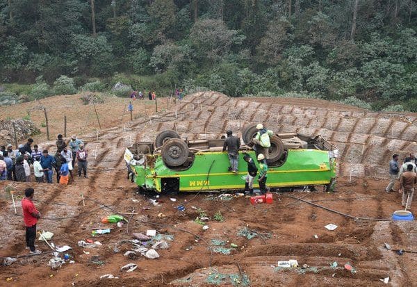 ஊட்டி அருகே 50 அடி பள்ளத்தில் கவிழ்ந்த மினி பஸ்; 32 பேர் காயம்