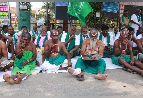 திருச்சி: திருச்சியில், தொடர் போராட்டம் நடத்த அனுமதி கோரி, நாமம் போட்டு, அரை நிர்வாணமாக போராட்டம் நடத்திய விவசாய சங்கத்தினர், திடீரென மனித கழிவை உண்ணும் போராட்டத்தில் ஈடுபட்டது அதிர்ச்சியை ஏற்படுத்தியது.