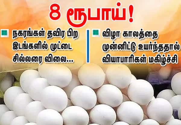 நகரங்கள் தவிர பிற இடங்களில் முட்டை சில்லரை விலை 8 ரூபாய்!