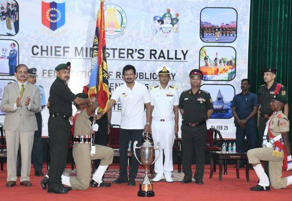 குடியரசு தின விழா பேரணியில் பங்கேற்ற என்.சி.சி., மாணவர்களை கவுரவிக்கும் நிகழ்ச்சி, சென்னை கலைவாணர் அரங்கில், நேற்று நடந்தது. என்.சி.சி., மாணவர்களுக்கு சான்றிதழ் மற்றும் பரிசுகள் வழங்கி, உதயநிதி கவுரவித்தார்.