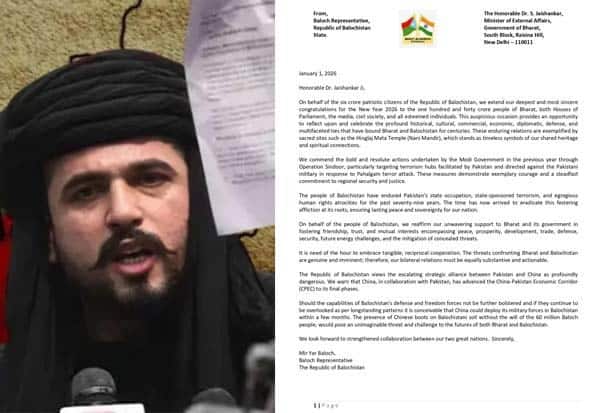 இந் நிலையில் பலுச் பிரபல தலைவர் மிர்யார் பலூச், மத்திய வெளியுறவு அமைச்சர் ஜெய்சங்கருக்கு அவசரக் கடிதம் ஒன்றை எழுதி உள்ளார். அதில் அவர் கூறியுள்ளதாவது;