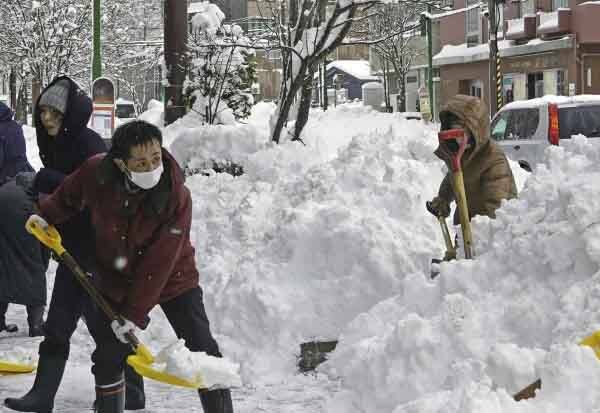 கட்டடங்களின் மேற்கூரைகளில் படிந்திருக்கும் பனியை அகற்றும் பணியின் போதும், பனியில் புதைந்தும் இதுவரை 30 பேர் உயிரிழந்துள்ளனர். அதிக உயிரிழப்பானது அமோரி மாகாணத்தில் பதிவாகி இருக்கிறது.