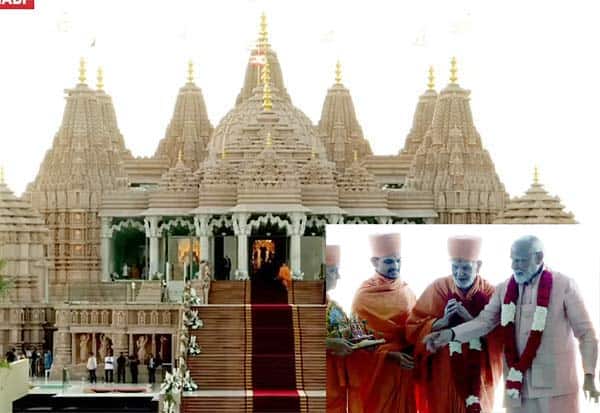 முன்னதாக மஹந்த் சுவாமி மகராஜ் சிறப்பு பூஜைகள் செய்தார். தொடர்ந்து பிரமாண்ட கோயிலை நாட்டிற்கு நாட்டிற்கு அர்ப்பணிக்கப்பட்டது. விழாவில் ஆன்மீக தலைவர்கள், பல நாட்டில் இருந்தும் முக்கிய பிரமுகர்கள் மற்றும் ஏராளமான பக்தர்கள் கலந்து கொண்டனர்.