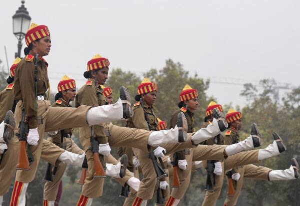 குடியரசு தின விழா ஒத்திகையில் ஈடுபட்ட எல்லைப் பாதுகாப்பு படையினர். இடம்: புதுடில்லி.