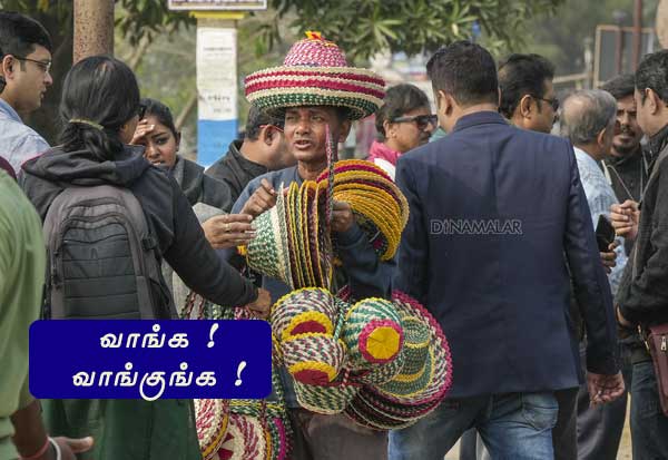 கோல்கட்டாவில் தொப்பி வியாபாரி விற்பனையில் மும்முரமாக உள்ளார்.
