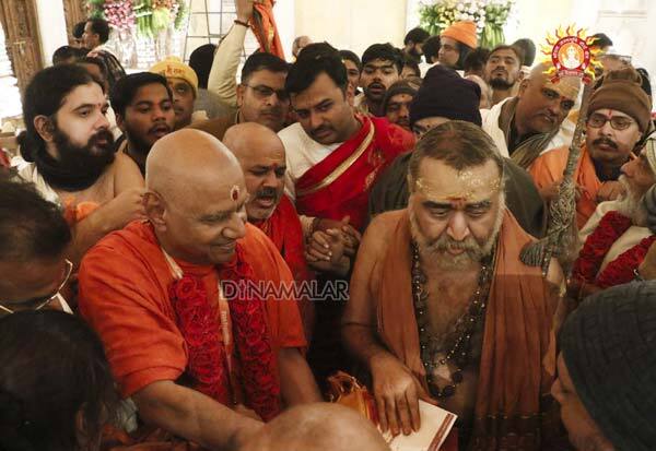 அயோத்தி ராமர் கோயிலில் பிராண பிரதிஷ்டை விழாவில் காஞ்சி மடம் சங்கராச்சாரியார் விஜயேந்திர சரஸ்வதி சுவாமிகள் பங்கேற்க வந்தார்.