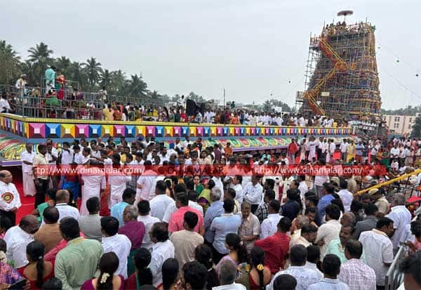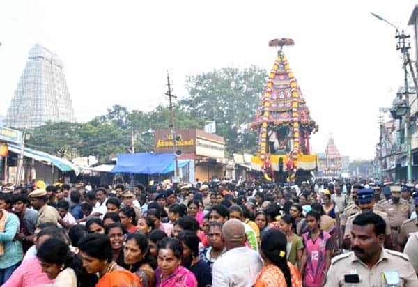 திருவண்ணாமலை அருணாசலேஸ்வரர் கோவிலில் கார்த்திகை தீபத் திருவிழா ஏழாம் நாள் தேரோட்டத்தில் விநாயகர் தேரை ஏராளமான பக்தர்கள் வடம் பிடித்து இழுத்து வழிபட்டனர்.