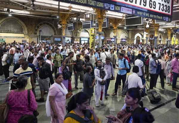கனமழை காரணமாக மும்பையில் ரயில்கள் ரத்து செய்யப்பட்டுள்ளது. வேறு வழியில்லாத நிலையில், மும்பை சி.எஸ்.டி., ரயில் நிலையத்தில் வேதனையுடன் காத்திருக்கும் பயணிகள்.