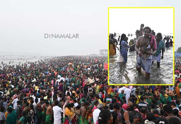 தைப்பூச திருநாளை முன்னிட்டு திருச்செந்தூர் முருகன் கோயில் கடற்கரையில் புனித நீராடிய பக்தர்கள்.
