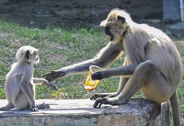 தாய் பாசத்தை மிஞ்ச யாராலும் முடியாது!. தனது குழந்தைக்கு உணவை ஊட்டும் தாய் குரங்கு. இடம்: நாடியா, மேற்குவங்கம்