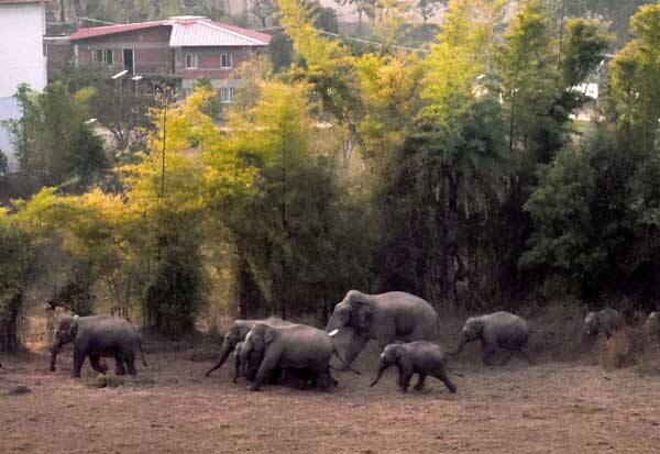 விவசாய நிலத்தில் உலா வரும் காட்டு யானைகள் கூட்டம். இடம்:சிக்மகளூர்,கர்நாடகா