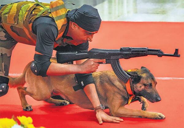 புதுடில்லி சிவாஜி பார்க் மெட்ரோ ரயில் நிலையத்தில், நேற்று நடந்த அருங்காட்சியக துவக்க விழாவில், மத்திய தொழில் பாதுகாப்பு படையின் மோப்ப நாய்களின் சாகசங்கள் நிகழ்த்தப்பட்டன.