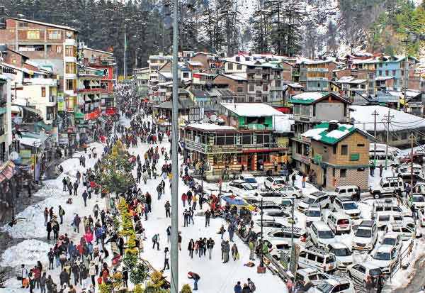ஹிமாச்சல பிரதேசத்தில் கடும் பனி பொழிவு நிலவுகிறது. முழுதும் பனி போர்த்திய மணாலியில் குவிந்துள்ள சுற்றுலா பயணியர்.