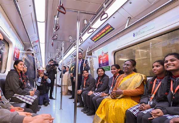 டில்லி மெட்ரோ ரயிலில் ஜனாதிபதி திரவுபதி முர்மு பயணித்தார். அப்போது பள்ளி மாணவ- மாணவியருடன் கலந்துரையாடினார்.