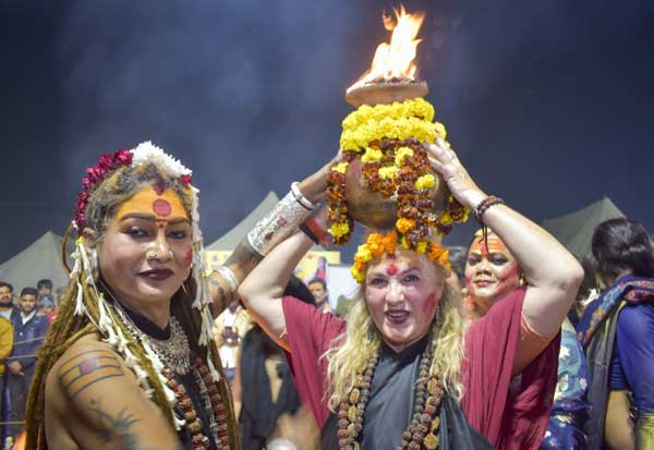 உ பி., மாநிலம் பிரயாக்ராஜ்ஜில் உள்ள மகாமண்டீஸ்வரர் கோயில் வெளிநாட்டவர்கள் நேர்த்திக்கடன் செலுத்தினர்.