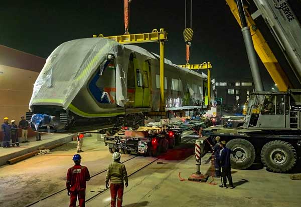 காஸியாபாத் ரயில் பெட்டிகள் தயாரிப்பு நிலையத்தில் இருந்து மெட்ரோ ரயில் பாகங்கள் அனுப்பிவைக்கப்படும் காட்சி.
