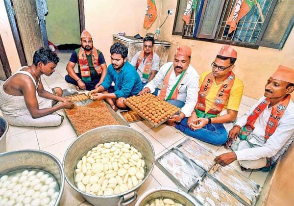 லோக்சபா தேர்தலில் பதிவான ஓட்டுக்கள் நாளை எண்ணப்பட்டு முடிவுகள் அறிவிக்கப்பட உள்ளன. இதையொட்டி முன்கூட்டியே இனிப்புகளை தயார் செய்யும் பணியில் ஈடுபட்டுள்ள பா.ஜ.,வினர்., இடம்: பாட்னா , பீஹார்.