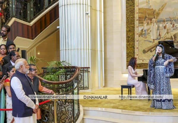 அபுதாபியில் பிரதமர் மோடியை வரவேற்கும் வகையில் நடந்த இசை நிகழ்ச்சி.