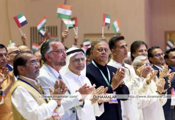 அபுதாபியில் பிரதமர் மோடியை யு.ஏ.இ. துணைப்பிரதமர் சையிப் பின் ஜாயித் அல் நஹ்யான் ஆரத்தழுவினார்.