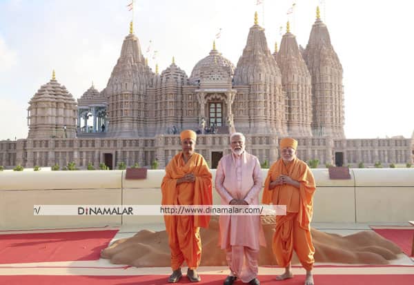 அபுதாபியில் திறக்கப்பட்ட முதல் ஹிந்து கோயில் முன் மோடி.
