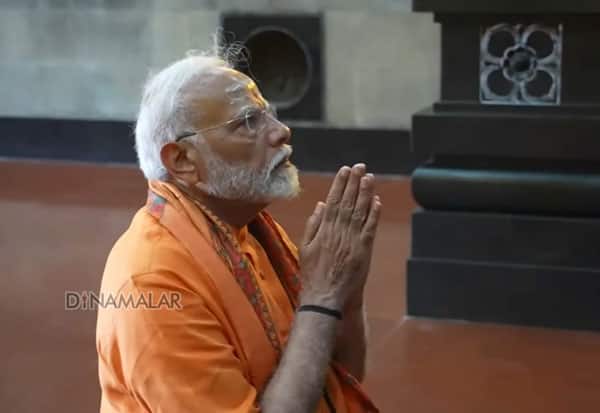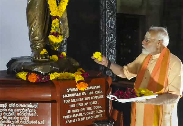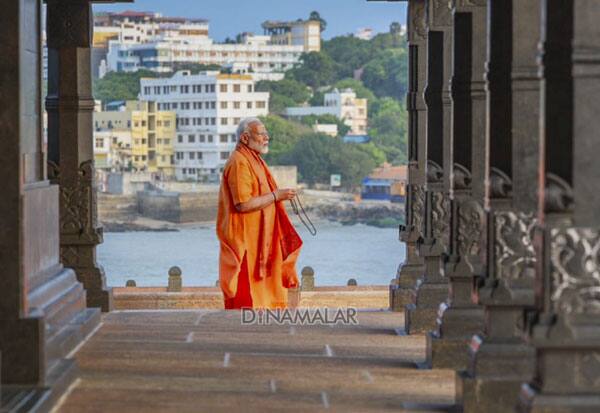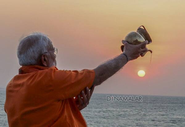 கன்னியாகுமரி (மே.30) வந்தார். அங்கு விவேகானந்தர் பாறையில் அமர்ந்து