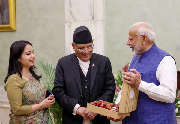நேபாள பிரதமர் புஷ்ப கமல் பிரதமர் மோடியை சந்தித்து, வாழத்து தெரிவித்தார்.