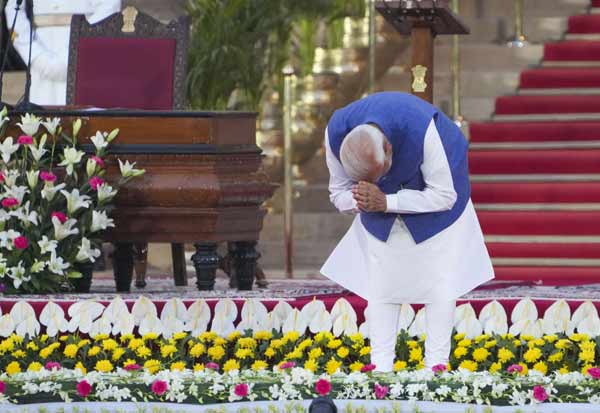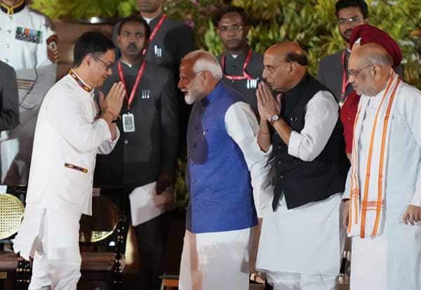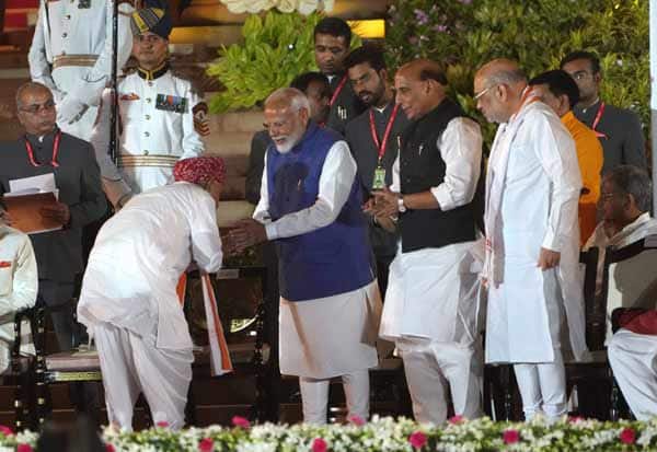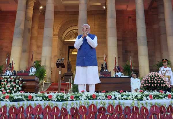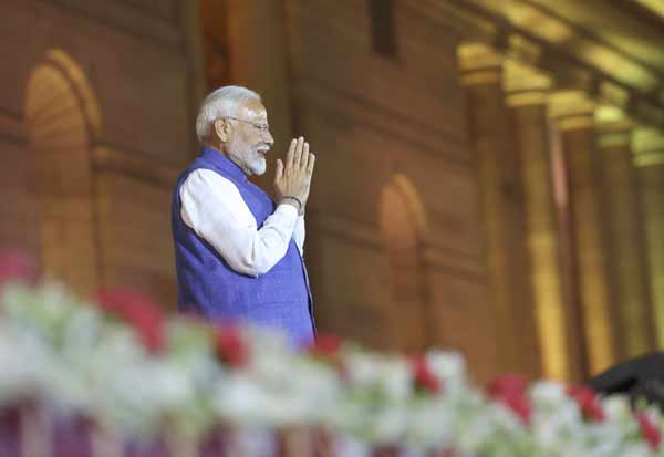 பதவியேற்பு விழாவில் பங்கேற்றவர்களுக்கு கை கூப்பி பிரதமர் மோடி வணக்கம் தெரிவித்தார்.