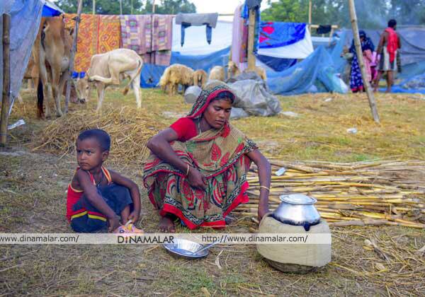 நிவாரண முகாமில் தங்கி உள்ள பெண் உணவு சமைக்கிறார்.