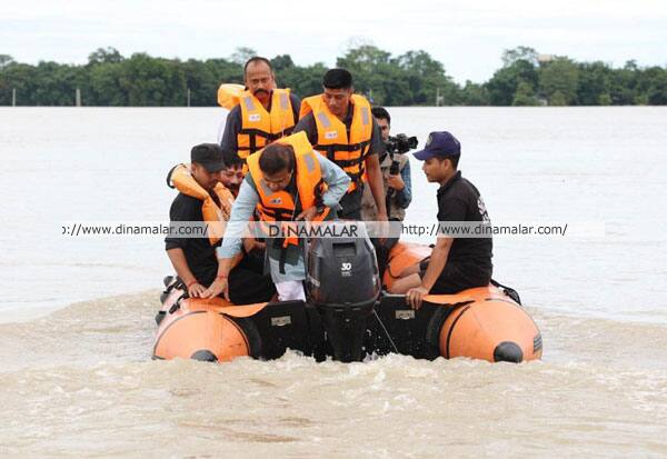 கனமழை காரணமாக அசாம் மாநிலம் வெள்ளத்தில் சிக்கியவர்களை மீட்ட மீட்பு படையினர்.