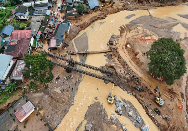 வயநாடு சூரல்மலையில் நிலச்சரிவு நடந்த பகுதியில் ராணுவத்தினர் அமைத்த பாலம்
