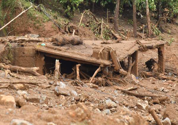 வயநாடு முண்டக்கையில் நிலச்சரிவில் மண்ணில் புதைந்த வீடுகள்