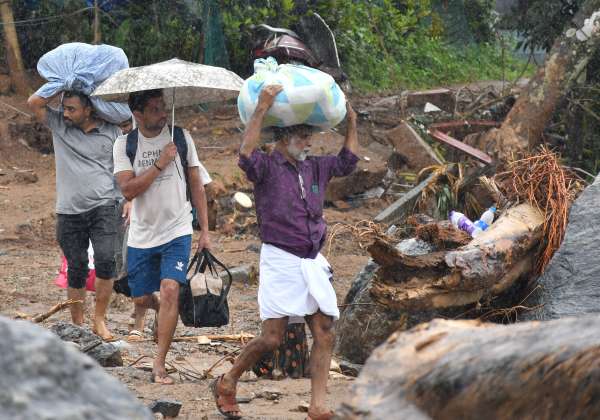 மிஞ்சிய உடமைகளை எடுத்து செல்லும் மக்கள். இடம் :வயநாடு சூரல்மலை அருகே படவெட்டி பகுதி.