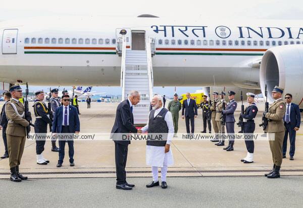 வார்சா நகரில் பிரதமர் மோடிக்கு அளிக்கப்பட்ட வரவேற்பு.