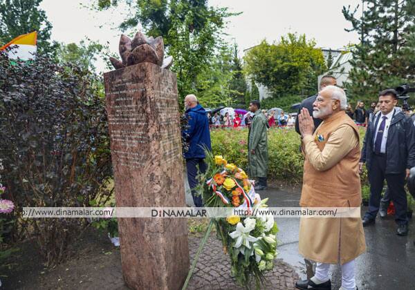 கீவ் நகரில் உள்ள போர் நினைவிடத்தில், போரில் உயிரிழந்த குழந்தைகளுக்கு உக்ரைன் அதிபர் ஜெலன்ஸ்கி உடன் சேர்ந்து அஞ்சலி செலுத்திய பிரதமர் மோடி.