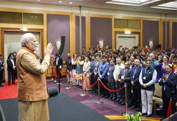 இந்திய வம்சாவளியினர் மத்தியில் உரையாற்றிய பிரதமர் மோடி.