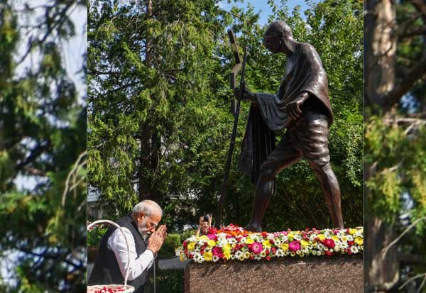 உக்ரைன் தலைநகர் கீவில் உள்ள மஹாத்மா காந்தி சிலைக்கு பிரதமர் மரியாதை செலுத்தினார்.