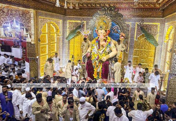 விநாயகர் சதுர்த்தி, நாடு முழுவதும் கோலாகலமாக கொண்டாடப்பட்டு வருகிறது. மஹாராஷ்டிரா மாநிலம் மும்பையின் லால்பகுஜா ராஜா பகுதியில் உள்ள கோயிலில் வழிபாடு நடத்திய பக்தர்கள்.