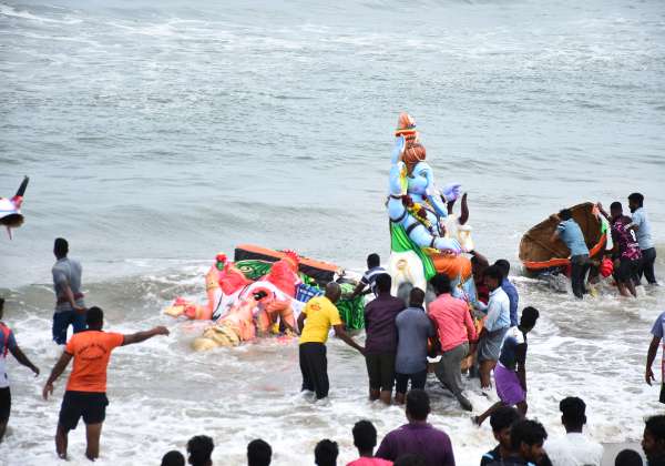 கடலூர் தேவனாம்பட்டினம் சில்வர் பீச்சில் விநாயகர் சிலையை கரைத்தனர்.