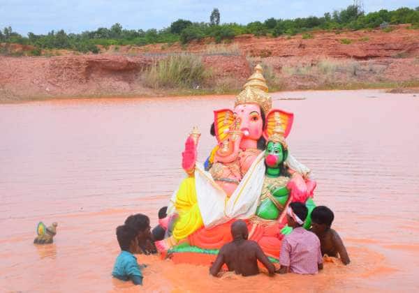விருத்தாசலம் பகுதியில் பிரதிஷ்டை செய்யப்பட்ட விநாயகர் சிலைகள் சின்னபண்டாரங்குப்பம் கலர்லரங்க ஏரியில் விஜர்சனம் செய்யப்பட்டது
