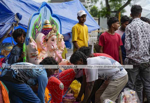 டில்லியில் விநாயகர் சிலையை வாங்கி செல்லும் பக்தர்கள்.