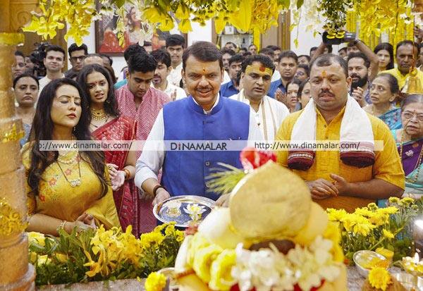 துணை முதல்வர் பட்னாவிஸ் வழிபாடு நடத்தினார்.