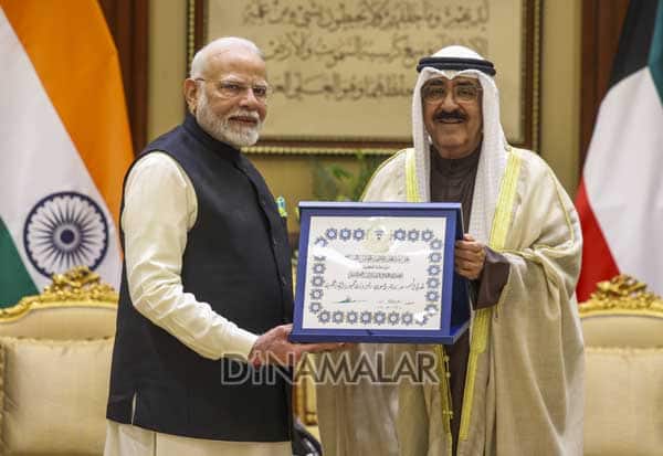 40 ஆண்டுகால வரலாற்றில் இதுவரை இந்திய பிரதமர் யாரும் செல்லாத நிலையில் பிரதமர் மோடி குவைத் சென்றார். அங்கு அவருக்கு சிவப்பு கம்பள வரவேற்பு, மற்றும் அந்நாட்டின் உயரிய விருது வழங்கி கவுரவிக்கப்பட்டது.