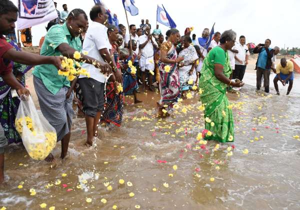 சுனாமி நினைவு தினத்தை முன்னிட்டு கடலூர் தேவனாம்பட்டினம் கடற்கரையில் மலர் தூவி மற்றும் பால் ஊற்றி அஞ்சலி செலுத்தினர்.