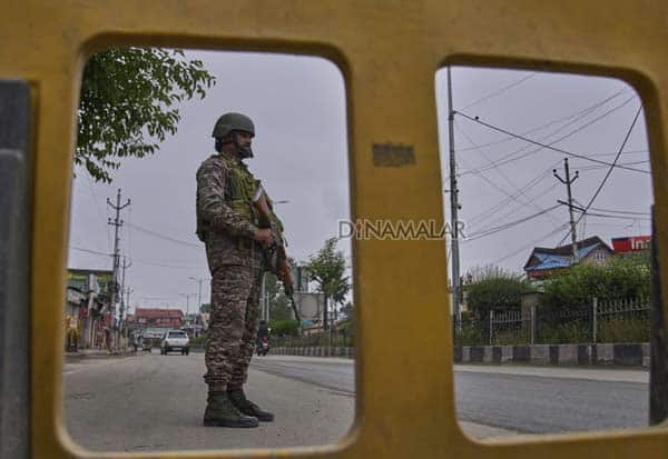 இந்தியா , பாகிஸ்தான் இடையே பதட்டம் ஏற்பட்டதை அடுத்து காஷ்மீரில் பாதுகாப்பு பணியில் இந்திய படையினர்.