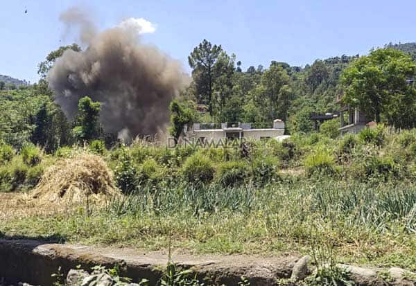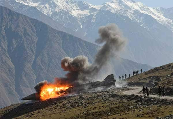இந்தியா , பாகிஸ்தான் இடையில் பதட்டம் ஏற்பட்ட போது காஷ்மீர் எல்லையில் விழுந்த குண்டு வெடித்து சிதறிய காட்சி.