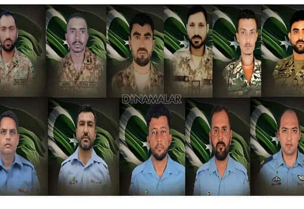 பலியான பாக்., வீரர்கள் ; இந்தியா, பாகிஸ்தான் இடையே நடந்த மோதலில் இந்திய ராணுவம் நடத்திய தாக்குதலில் சேதம் ஏற்பட்டதாக பாகிஸ்தான் ஒத்து கொண்டது. இந்திய படை தாக்குதலில் பலியான 11 பாகிஸ்தான் வீரர்கள் படத்தை வெளியிட்டுள்ளது. 4O பாகிஸ்தான் வீரர்கள் கொல்லப்பட்டதாக இந்திய ராணுவம் தெரிவித்திருந்தது குறிப்பிடத்தக்கது.