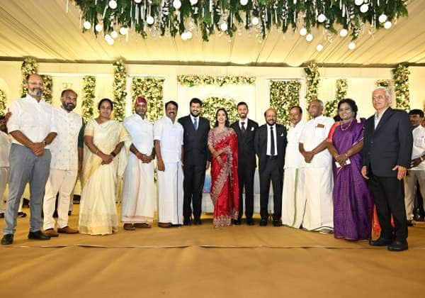 தினமலர் நாளிதழ் கோவை பதிப்பு வெளியீட்டாளர் எல்.ஆதிமூலம் -- சுதா ஆதிமூலம் தம்பதியின் மகள் திருமணம் சென்னையில் (ஜூன்-8) விமர்சையாக நடந்தது. மணமக்கள் தர்ஷனா - அபராஜித் ஆகியோரை வாழ்த்திய சென்னை சில்க்ஸ் இயக்குநர் மாணிக்கம், ஜெயச்சந்திரன் டெக்ஸ்டைல்ஸ் இயக்குநர் சுந்திரலிங்கம்.